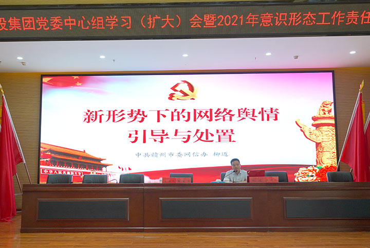 6月22日下午,贛州城投集團(tuán)舉辦黨委中心組學(xué)習(xí)(擴(kuò)大)會暨2021年意識形態(tài)工作責(zé)任制專題培訓(xùn)。市委網(wǎng)信辦副主任柳邁應(yīng)邀授課,集團(tuán)黨委副書記黃家偉主持并講話,集團(tuán)全體高管出席,各黨支部(黨總支)書記及支委成員、支部宣傳干事,各部門、子公司負(fù)責(zé)人及信息員等聆聽學(xué)習(xí)。