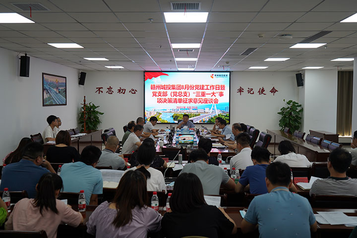 8月20日下午,贛州城投集團(tuán)黨委召開8月份黨建工作日暨黨支部(黨總支)“三重一大”事項(xiàng)決策清單征求意見座談會,傳達(dá)學(xué)習(xí)市國資委黨委8月份黨建工作日座談會精神,并就部分支部擬定的《重大事項(xiàng)決策清單》進(jìn)行了討論。集團(tuán)黨委副書記黃家偉主持會議,集團(tuán)各黨支部(黨總支)書記以及相關(guān)部門負(fù)責(zé)人參加會議。