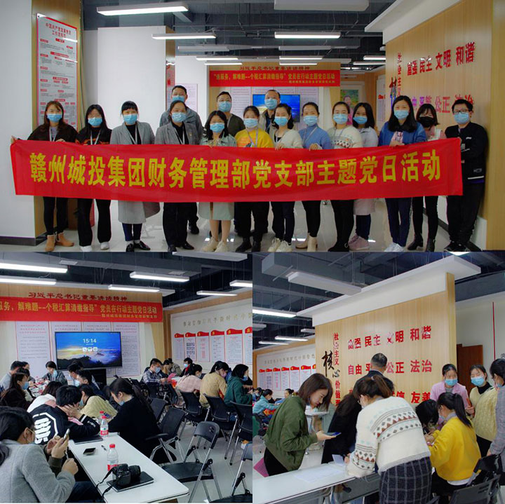 為推進(jìn)黨建工作與財(cái)務(wù)管理工作深度融合,解決2020年集團(tuán)員工在個(gè)人所得稅匯算清繳中遇到的困難,4月24日,贛州城投集團(tuán)財(cái)務(wù)管理部黨支部組織支部黨員及入黨申請(qǐng)人在集團(tuán)13樓黨性教育體驗(yàn)室,開展了“送服務(wù),解難題”主題黨日活動(dòng),邀請(qǐng)了集團(tuán)各部門、子公司員工代表參加活動(dòng)。