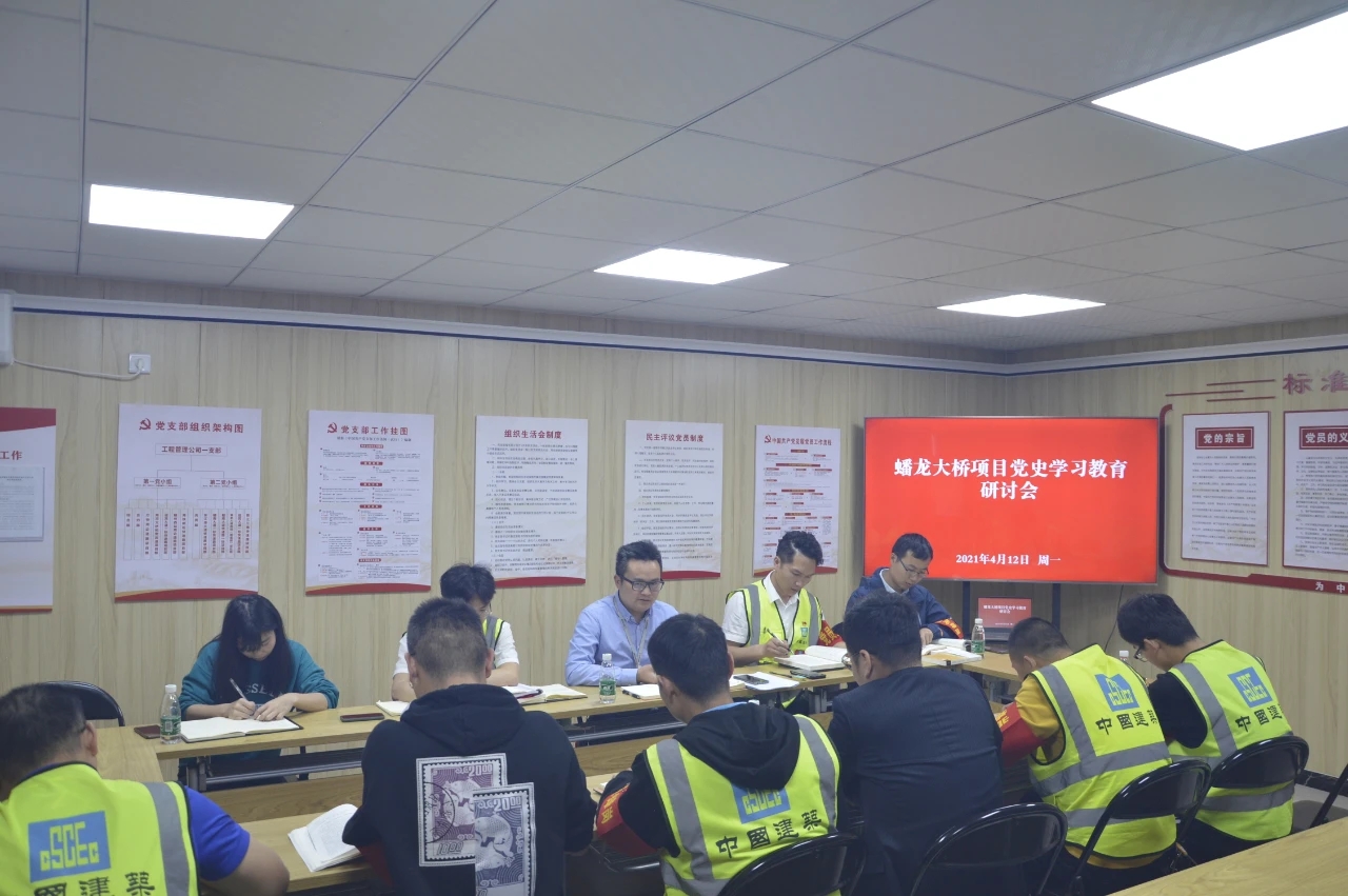 在蟠龍大橋項(xiàng)目,黨史學(xué)習(xí)教育活動(dòng)已常態(tài)化開(kāi)展。在辦公區(qū)、施工現(xiàn)場(chǎng)掛起了一抹抹醒目的黨史學(xué)習(xí)宣傳標(biāo)語(yǔ),在黨員活動(dòng)室走廊設(shè)置了黨史學(xué)習(xí)墻。在每月首個(gè)工作日,項(xiàng)目部組織全體黨員及項(xiàng)目人員組織升旗活動(dòng),并開(kāi)展國(guó)旗下的黨史故事誦讀活動(dòng)。同時(shí),組織觀看微紀(jì)錄片《見(jiàn)證初心和使命的“十一書(shū)”》,重溫革命先烈的感人故事,感悟初心使命,弘揚(yáng)革命精神,為高質(zhì)量推動(dòng)項(xiàng)目建設(shè)積極奮斗。