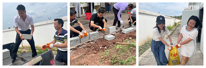 6月5日,利用周末休息時(shí)間,曹惠組織生產(chǎn)一線黨員加班加點(diǎn),利用生產(chǎn)過程中產(chǎn)生的廢料混凝土,將其變廢為寶進(jìn)行“加工”,制成60余塊磚。