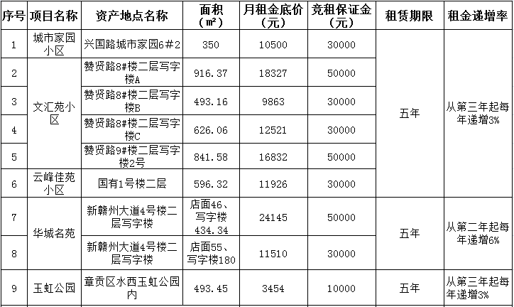 贛州振興實(shí)業(yè)有限責(zé)任公司委托江西潤資拍賣有限公司,定于2020年10月27日10:00開始在贛州市公共資源交易中心(長征大道9號)進(jìn)行國有資產(chǎn)公開招租,現(xiàn)歡迎符合條件的單位或個(gè)人前來報(bào)名參加競租。
