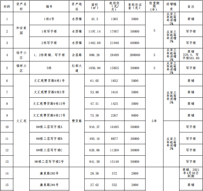 贛州振興實業(yè)有限責任公司委托江西江南拍賣有限公司,定于2021年5月28日10:00開始在贛州市公共資源交易中心(長征大道9號)進行國有資產(chǎn)公開招租,現(xiàn)歡迎符合條件的單位或個人前來報名參加競租。