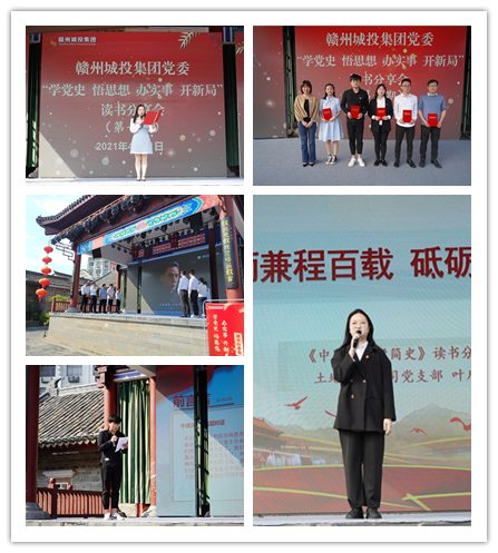 贛州城投集團(tuán)黨委“學(xué)黨史 悟思想 辦實(shí)事 開(kāi)新局”讀書分享會(huì)將每月舉辦一期,每期充分結(jié)合各黨支部業(yè)務(wù)特色,走進(jìn)社區(qū)、走進(jìn)項(xiàng)目、走進(jìn)基層等,一直持續(xù)到11月份共舉辦八場(chǎng),前七期由集團(tuán)黨支部結(jié)對(duì)聯(lián)合承辦預(yù)賽階段,第八期將由集團(tuán)黨委主辦讀書分享會(huì)總決賽。