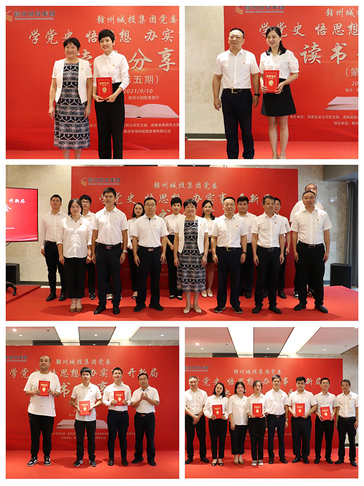 9月10日,為推動黨史學(xué)習(xí)教育有特色、出成效,贛州城投集團(tuán)黨委在贛州大劇院售票廳舉辦“學(xué)黨史 悟思想 辦實事 開新局”黨史學(xué)習(xí)教育第五期讀書分享會。市國資委二級調(diào)研員宋英蒞臨指導(dǎo),集團(tuán)黨委副書記黃家偉出席并作點評講話,集團(tuán)董事會秘書、集團(tuán)相關(guān)部門負(fù)責(zé)人、各黨支部書記及部分黨員參加。