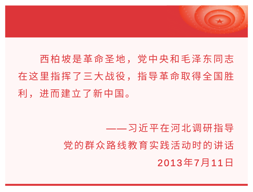 中國共產(chǎn)黨的百年輝煌歷程中,位于河北省平山縣的西柏坡是一個(gè)耀眼的紅色地標(biāo),有著“新中國從這里走來”的美譽(yù)——